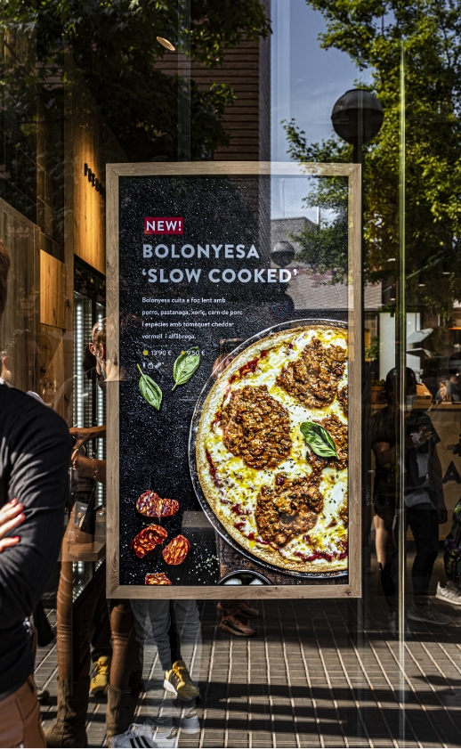 El reto era pasar de una pizzería de barrio a una cadena de pizzerías recordando que hacen un producto premium. Por otro lado, la tarea era darle un giro 360º a la marca en cuanto a estrategía, branding, activacion y comunicación.