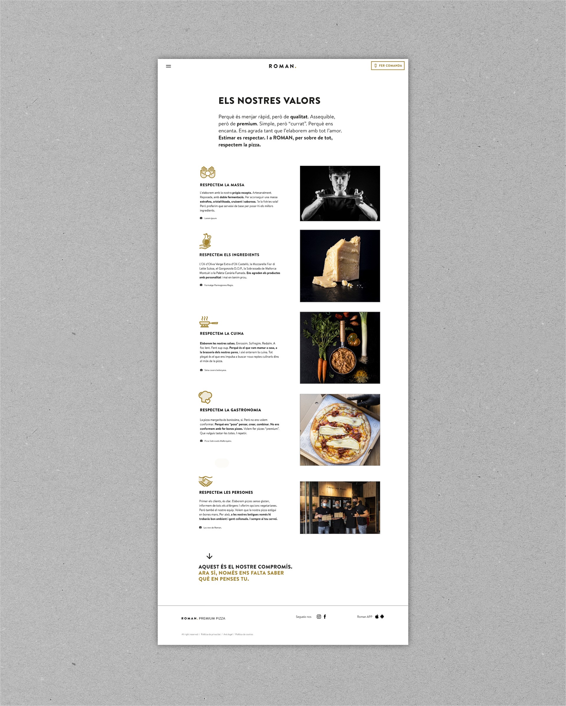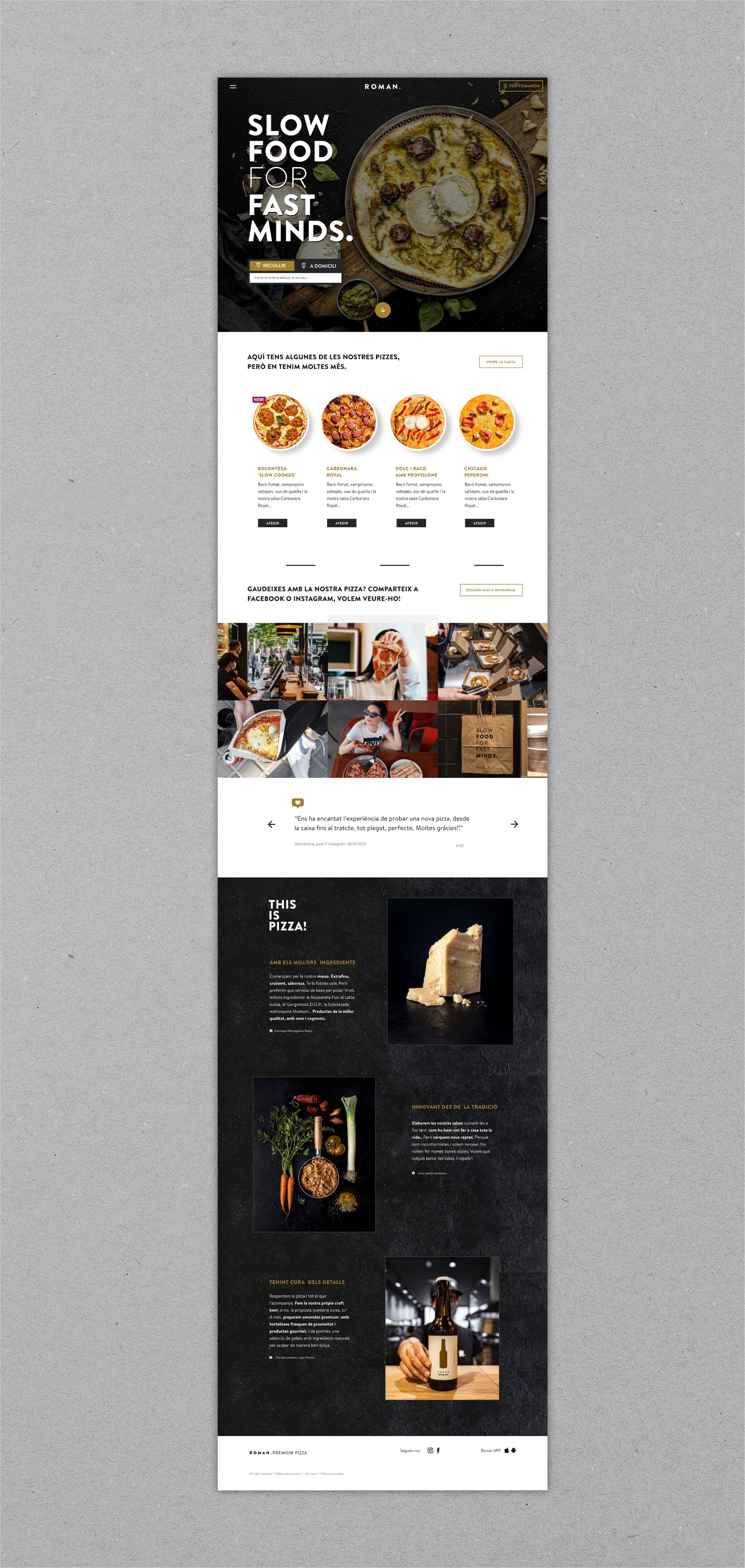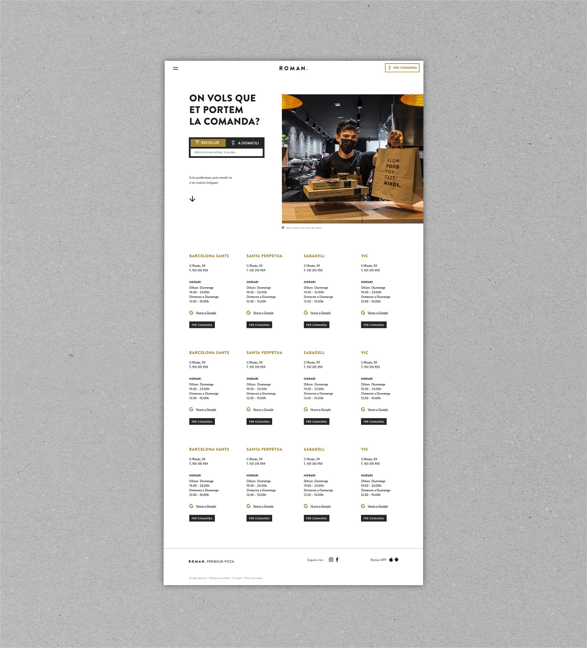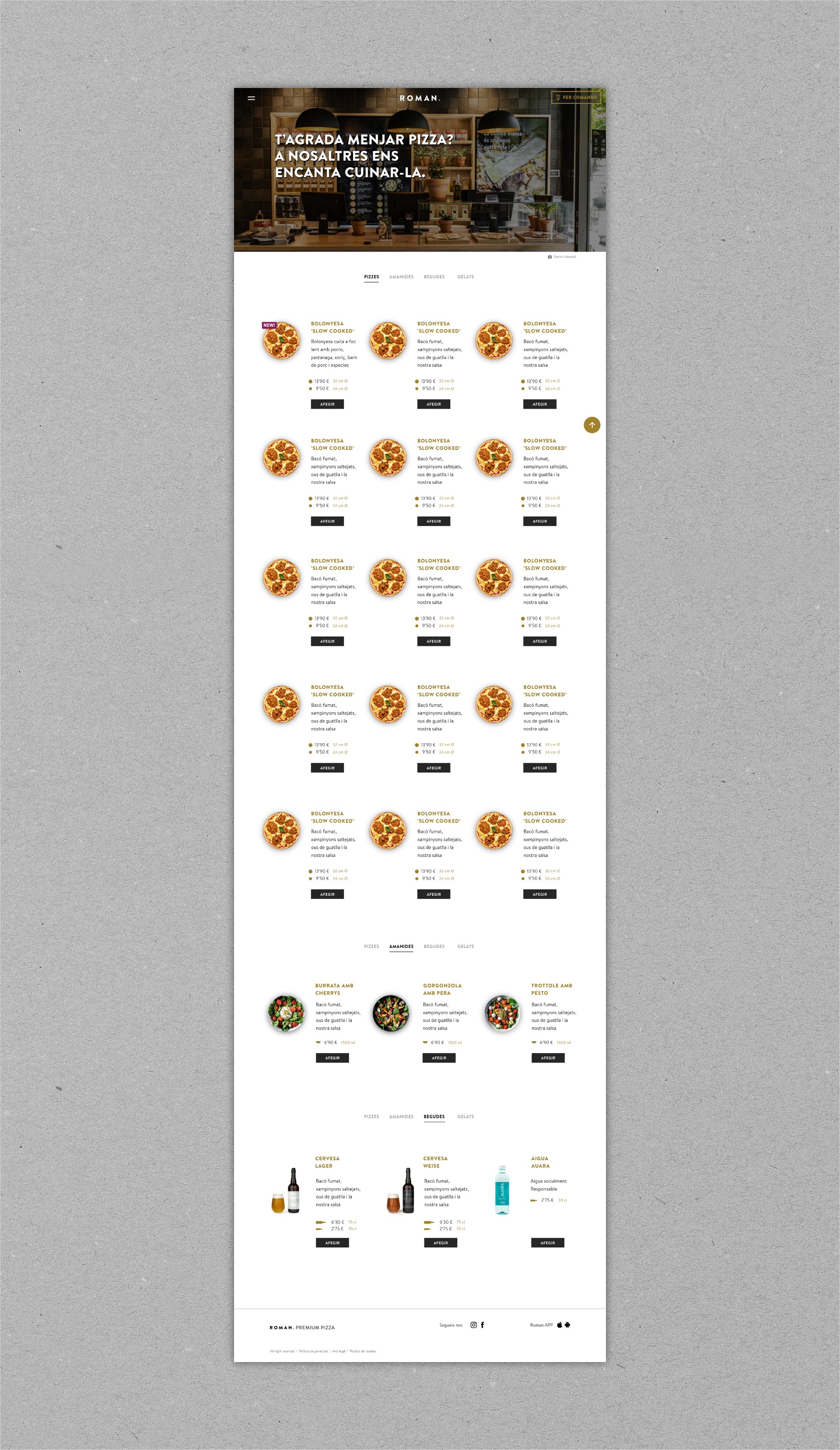 Roman Pizza es un obrador artesanal de pizzas gourmet. Un negocio familiar que funciona desde hace dos generaciones. Quieren romper la asociación de pizza y comida rápida. Entienden la pizza como base para nuevos retos gastronómicos, utilizando productos de alta calidad con Denominación de Origen o artesanos o definen su sello de identidad. Disponen de 15 establecimientos en Barcelona y alrededores.